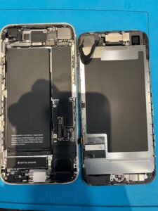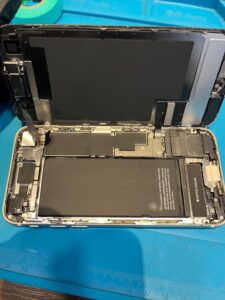 画面を開けてバッテリーを外していきます。画面は壊れやすいので慎重に行います。